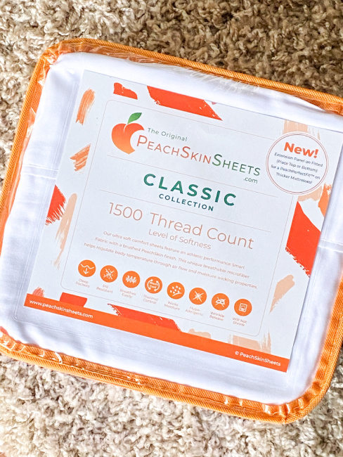 PeachSkinSheets are the perfect solution for everyone to obtain their best nights sleep ever! They are breathable, ultra soft, pill-resistant (which is HUGE for overall comfort) and anti-snag bed sheets that provide thermal control and moisture management properties. They help warm sleepers to stay cooler and cool sleepers to stay cozier which is everything and are made of a durable athletic grade performance SMART fabric that wicks away moisture to keep you drier and comfortable all night long. My favorite part is that they are a luxurious 1500 Thread Count Level of Softness which gives the sheets a super soft feel with a brushed PeachSkin finish on both sides!